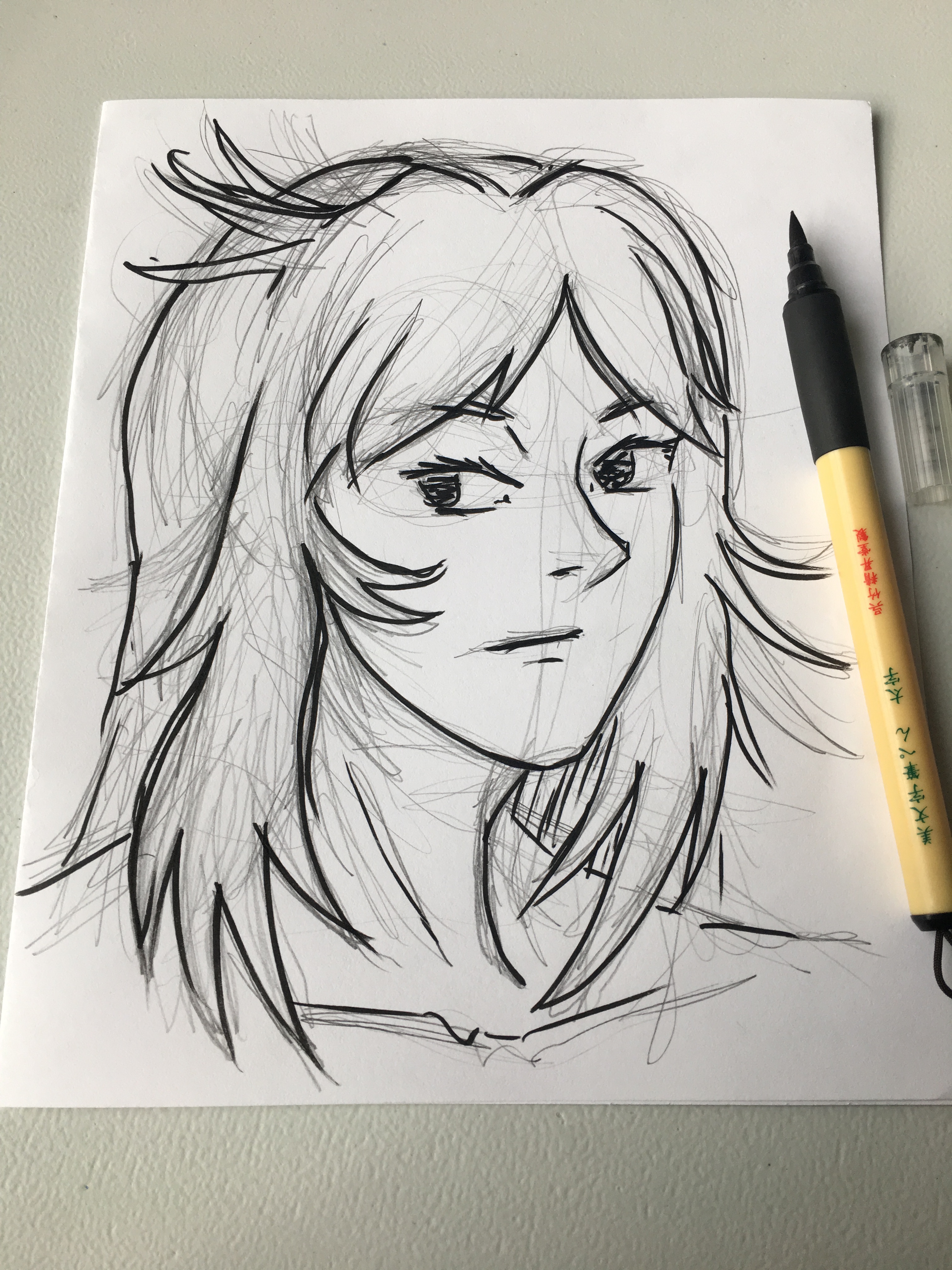 Get a large piece of paper. At least 18″x24″. Restart the ten minute drawing on large paper and spend at least one hour diving in.
